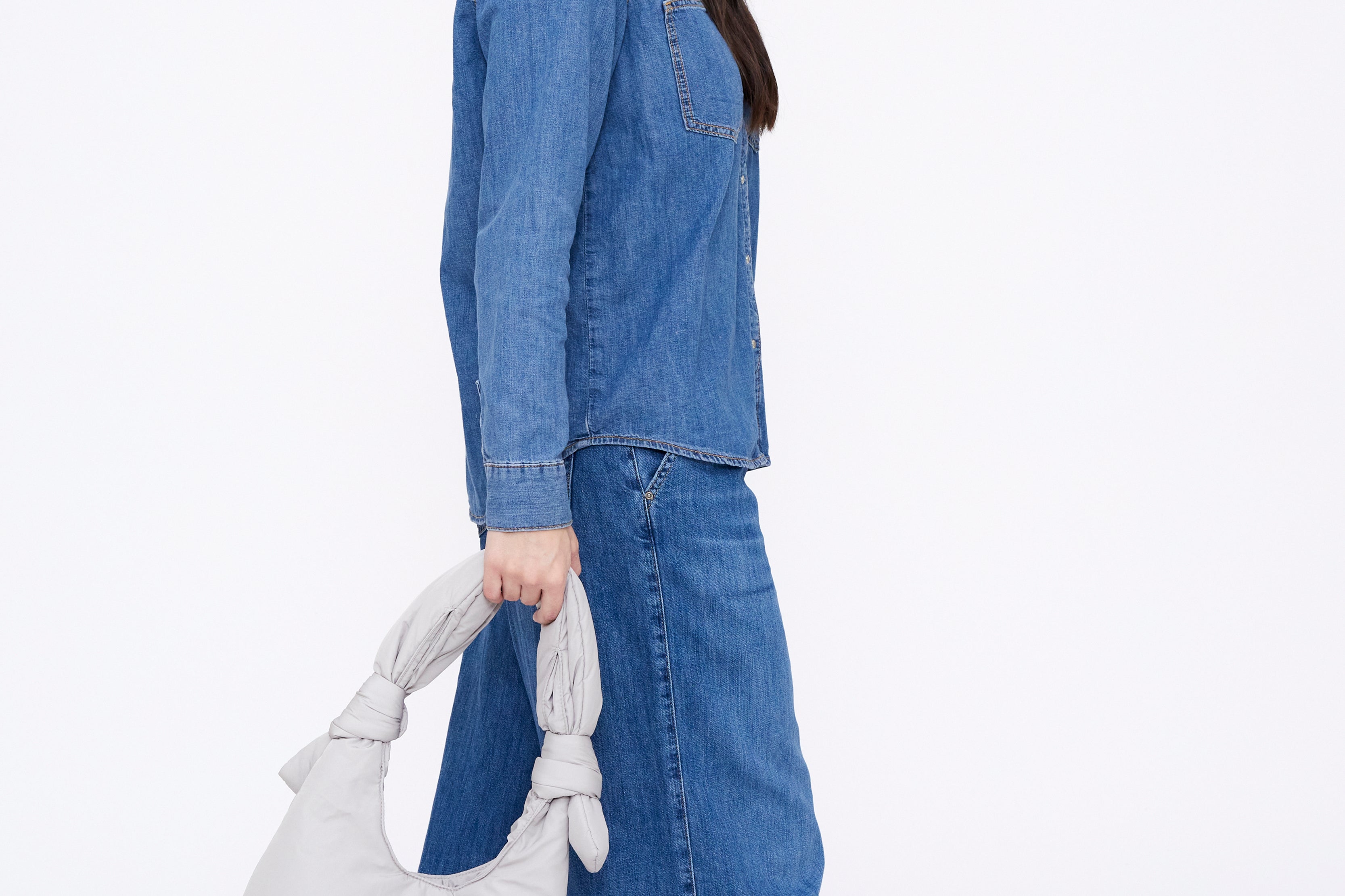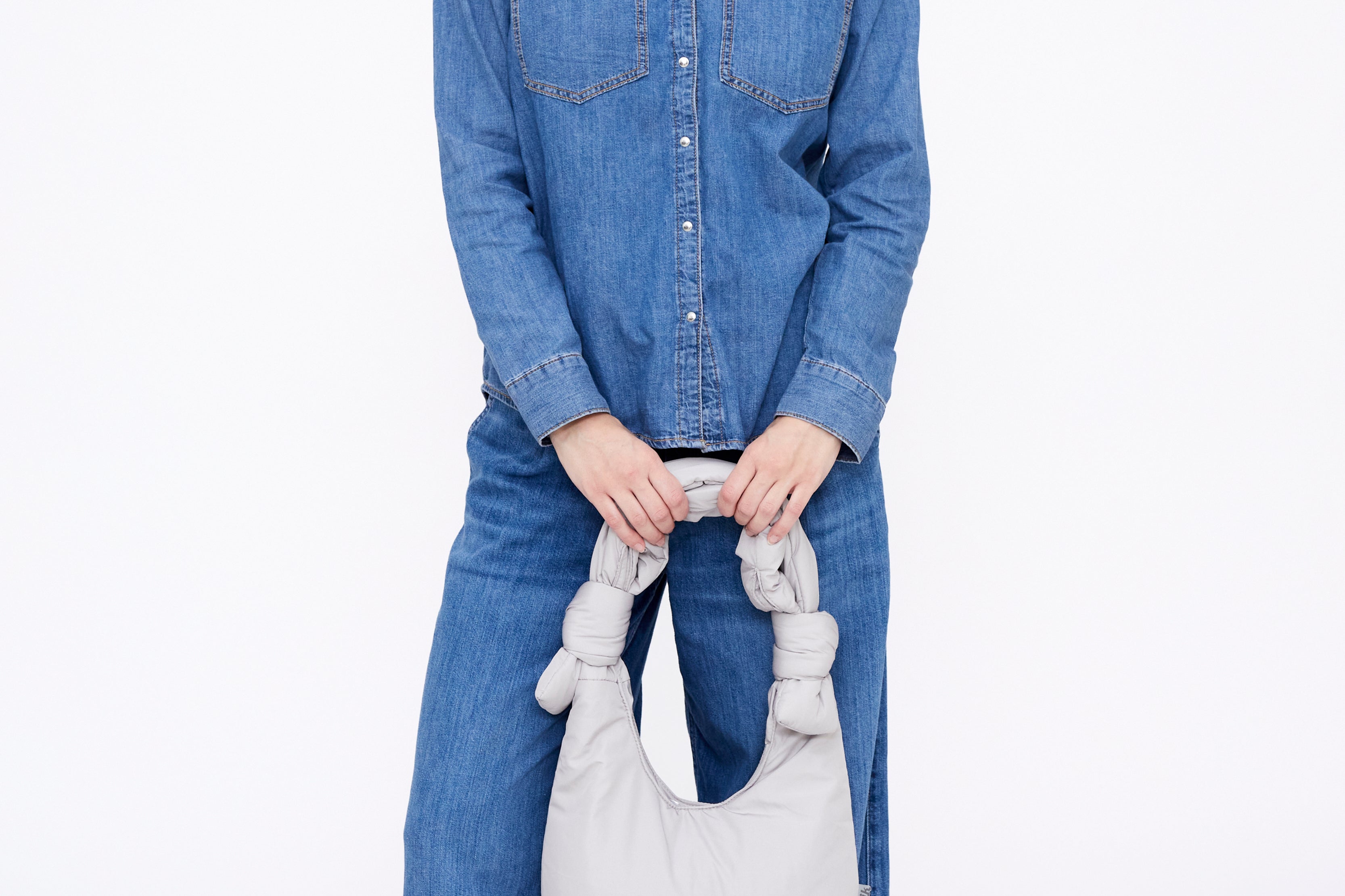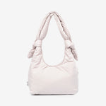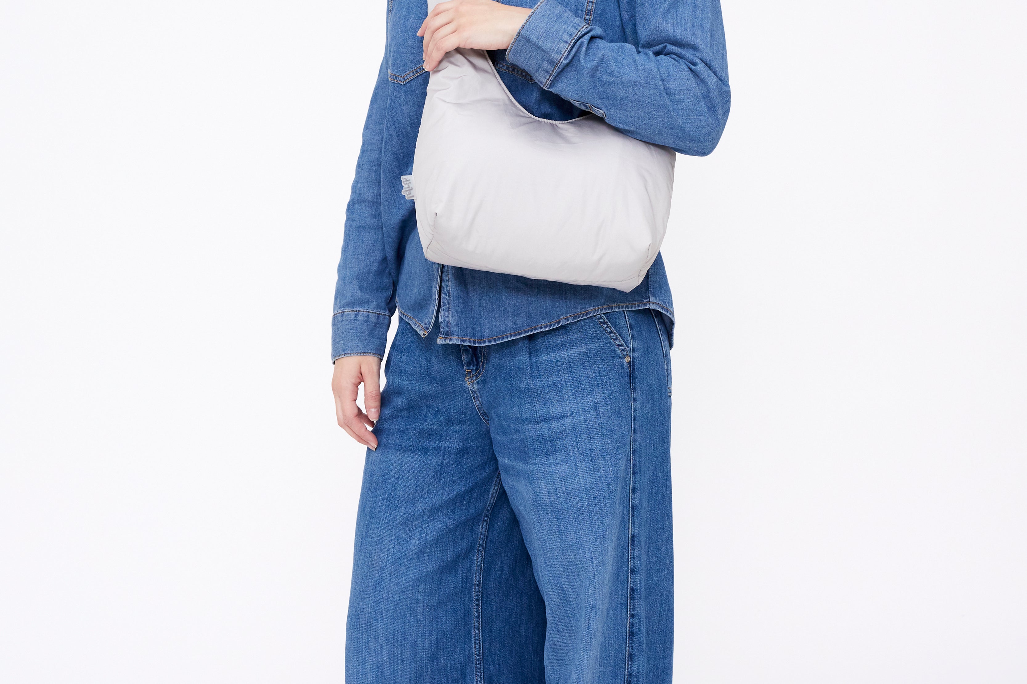 Mini version of our Biwa quilted bag. Designed to be used both as a shoulder bag and as a messenger bag, thanks to its adjustable sliding knots. Its 100% recycled fabric and soft quilting make it very light and pleasant to the touch.Large capacity main compartment and interior zipped pocket. Perfect for day or night.