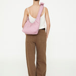 Mini version of our Biwa quilted bag. Designed to be used both as a shoulder bag and as a messenger bag, thanks to its adjustable sliding knots. Its 100% recycled fabric and soft quilting make it very light and pleasant to the touch.Large capacity main compartment and interior zipped pocket. Perfect for day or night.