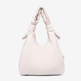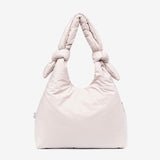 Quilted bag designed to be used both as a shoulder bag and as a messenger bag, thanks to its adjustable sliding knots. Its 100% recycled plastic fabric and soft quilting make it very light and pleasant to the touch. It has a large main compartment and a zipped pocket for small or essential items. Magnetic closure.