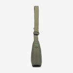 Half moon bag with zippered closure. It features an inner zipped pocket to keep your smaller items accesible. Ajustable cotton webbing straps.