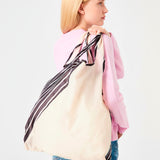 Colourful reusable bag that can be used for carrying groceries, books or whatever you need thanks to its functional desing and lightweight fabric.