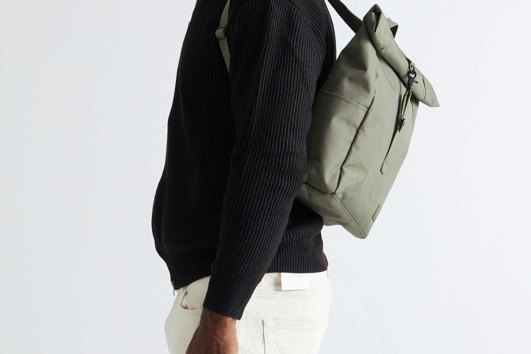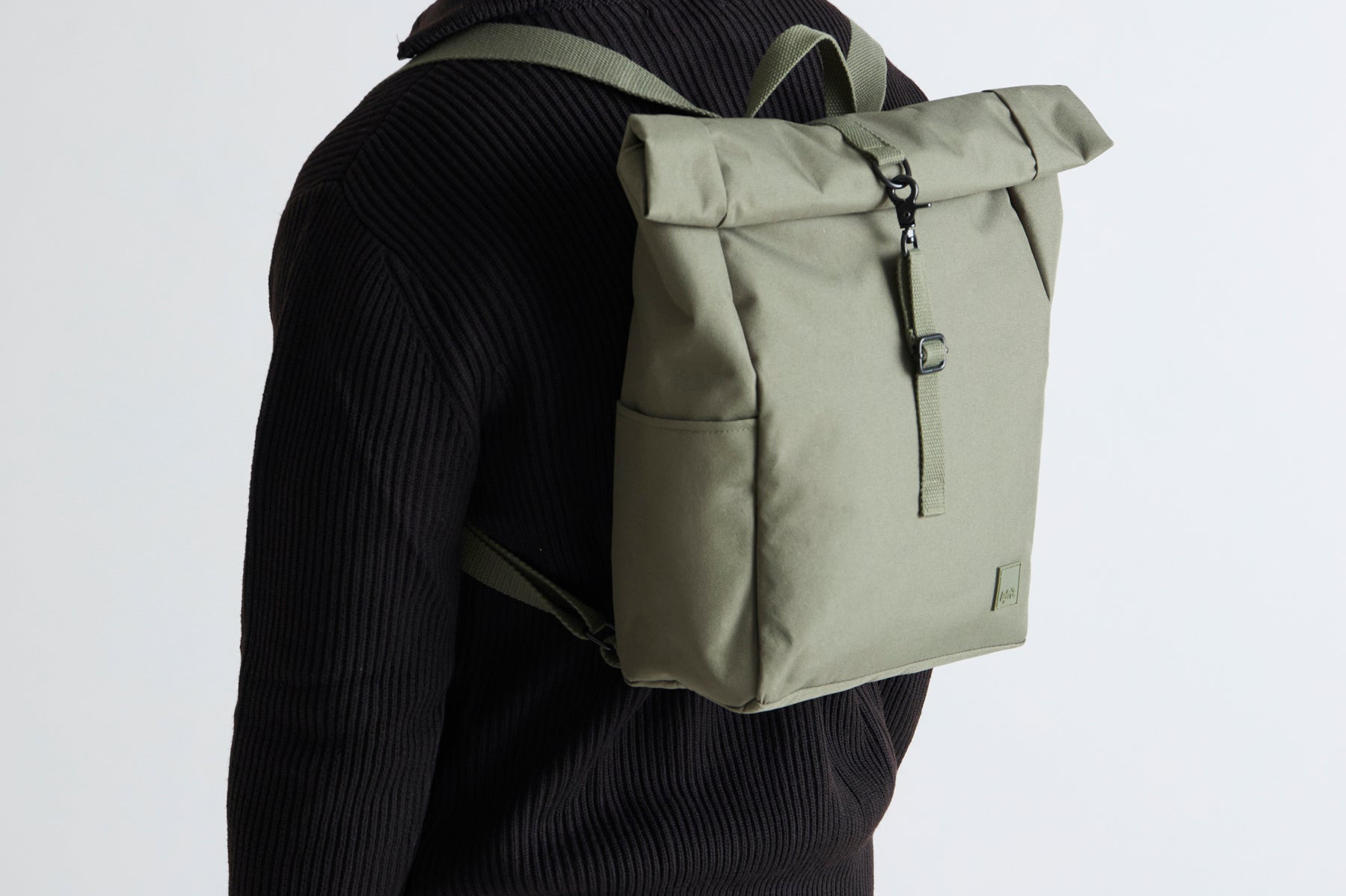 Mini has never been so big. The compact version of our Roll model has the space to carry all your daily essentials. It features a padded compartment for laptops or electronic devices up to 13.6", a zipped inside pocket, and extra space for small objects. Its roll-up system with strong magnets, zip and metal hook makes it one of the safest backpack options for getting around town.